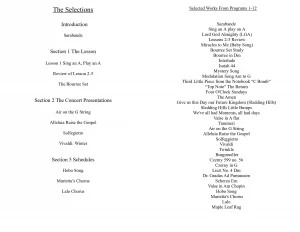 One of our most advanced programs yet, program 13 is an overview of Concert Presentations‘ 12 presentations. It features notable selections such as Vivaldi’s Winter concerto, Edouard Lalo Symphonie Espagnole, and an original skit, “The Lesson.”