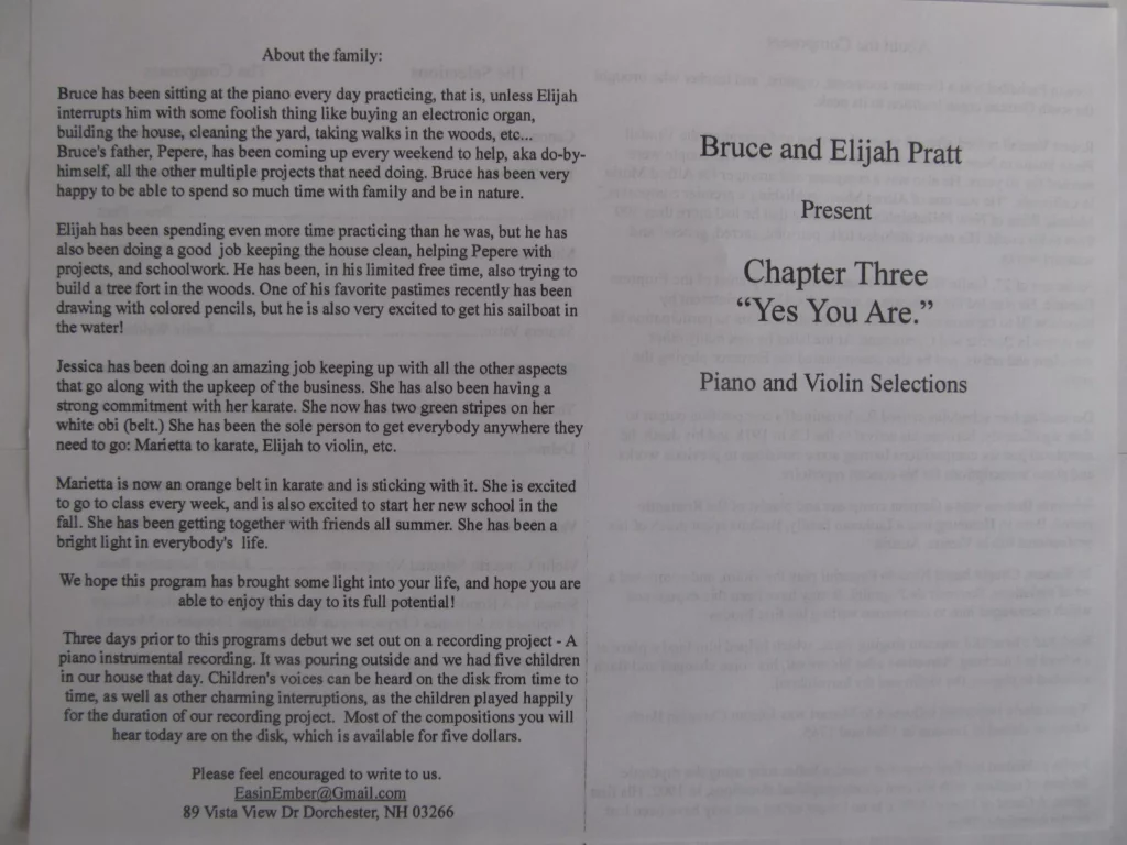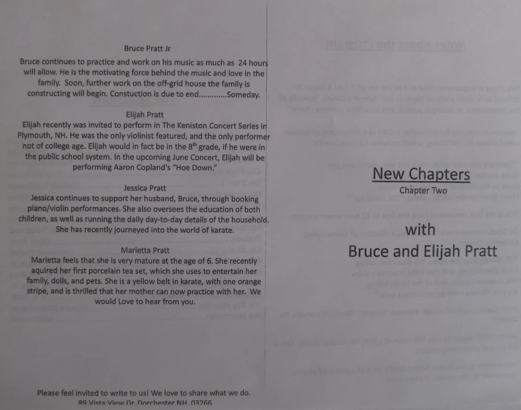 “Chapter Two”, the second program, was the first to include the “About the Family” update, the predecessor of the “Pratt Family Newsletter”.